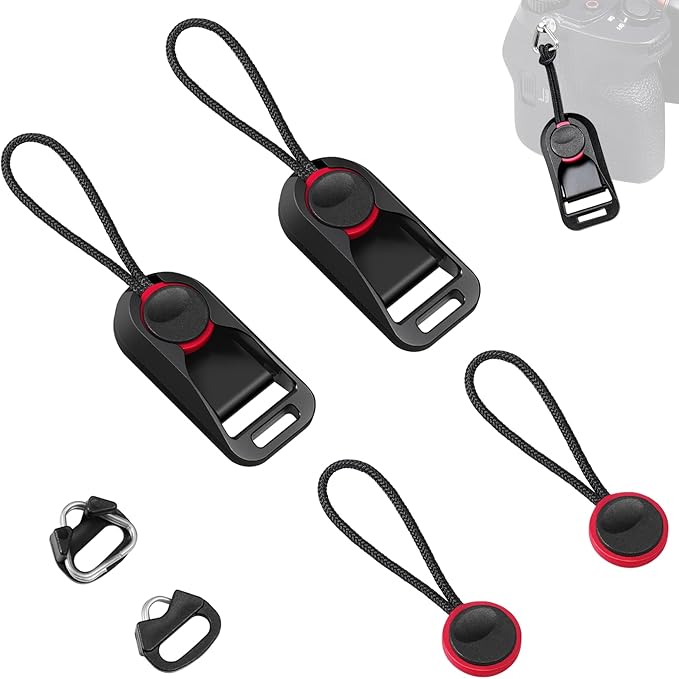 [Yullmu] アルミ合金+3層構造 アンカーリンクス カメラストラップ 三角リング付 耐荷重50kg 着脱簡単 カメラ・双眼鏡に汎用 2枚セット 黒+赤