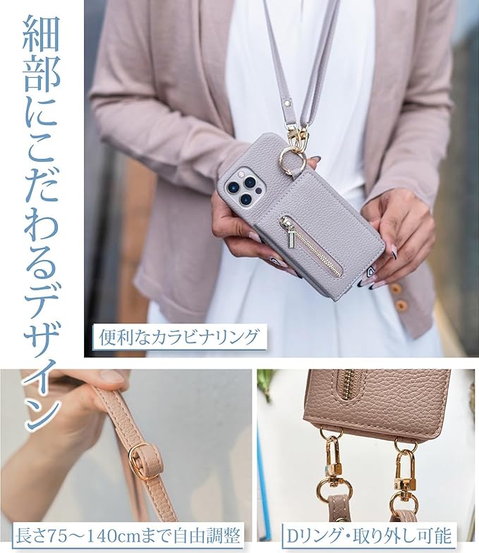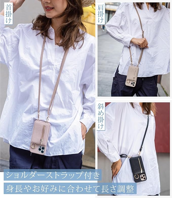 ショルダー タイプ スマホケース ストラップ付き 背面カード収納 リング付き 携帯カバー カード収納 背面ポケット 財布付き マグネットなし 背面手帳型ケース レザー