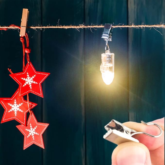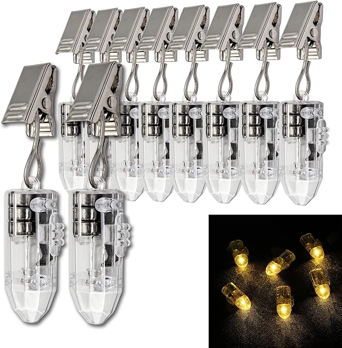 【多機能LEDバルブ】10個セット 高輝度豆電球(電池交換可能)、発光色:電球色、サイズ:約3.5*1.6*1.2cm、梱包内容:10 LEDバルブ(電池付属)、10 フッククリップ。