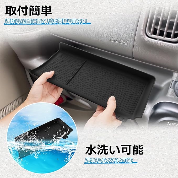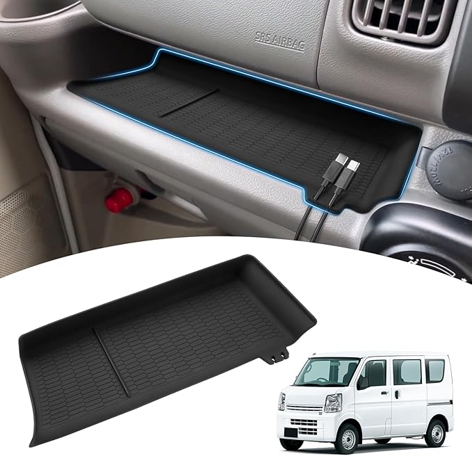 Mozan スズキ エブリイ DA17V DA17W専用 助手席 オープントレイマット エブリイバン エブリイワゴン インパネトレイマット ラバーマット ラバートレイ 滑り止め ポケットマット キズ防止 衝撃吸収 ケーブル固定 ガタガタ音なし 内装パーツ アクセサリー カスタムパーツ (ブラック)