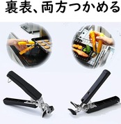 お皿・鉄板・網などいろいろつかめる鍋つかみ上向き下向きどちらでも挟んで持ち上げられる。