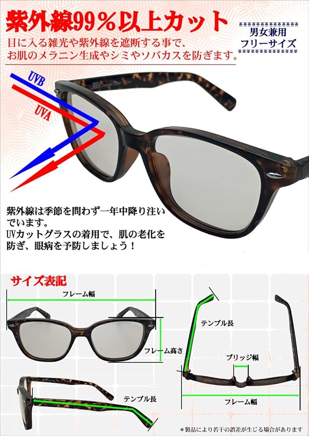 フレーム:ニッケル合金 / レンズ:ブラスチック(紫外線99%カット)