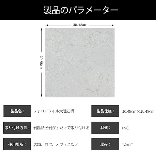 【商品仕様】 サイズ(約):幅304.8mm、奥行304.8mm。【リアル&高級感!】簡単でリアル空間に!貼るだけでお部屋の雰囲気を変えよう!
