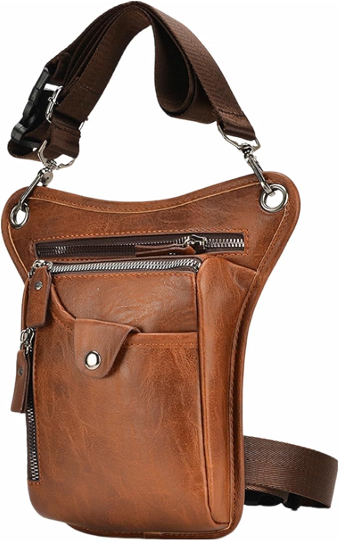 レッグバッグ 撥水 PU革 多機能 レッグポーチ ショルダーバッグ ウエストポーチ バイク用 アウトドア サイクリング ツーリング コンパクト 登山 (ライトブラウン)