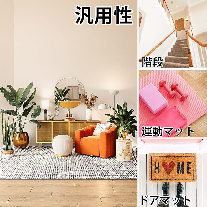 【汎用性】滑り止めシートは、ラグやマットの下に敷いても違和感がなく、清潔感ある白いの滑り止めシートなので、キッチンでの使用にもおすすめです。車内や置物の下など様々な場所で使用可能です。