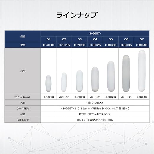 アズワン レギュラー撹拌子 (バリュー) φ5 15mm 10個入 /3-6657-02