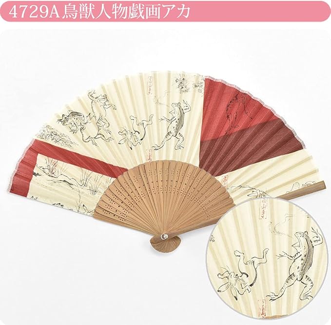 お気に入りの扇子で涼を取る日本画扇子です。日本画がプリントされた生地を使用した生地扇子です。サイズは7寸(約21cm)で男女兼用でご使用いただけます。老若男女を選ばず使いやすい、最も一般的な大きさです。要の金具には環がついていますので、お手持ちの房飾りなどを付けていただけます。普段使いにぴったりですね。お出かけのお供にお持ちください。鳥獣人物戯画:京都高山寺の国宝絵巻北斎:葛飾北斎の「富嶽三十六景 神奈川沖浪裏」 赤富士:葛飾北斎の「富嶽三十六景 凱風快晴」 日本橋:歌川広重「東海道五拾三次 日本橋 朝之景」猫の曲まり団扇:歌川国芳いずれも世界的にも大変有名な日本画です。海外へのお土産にもおすすめです。 【素材】骨:竹扇面:綿