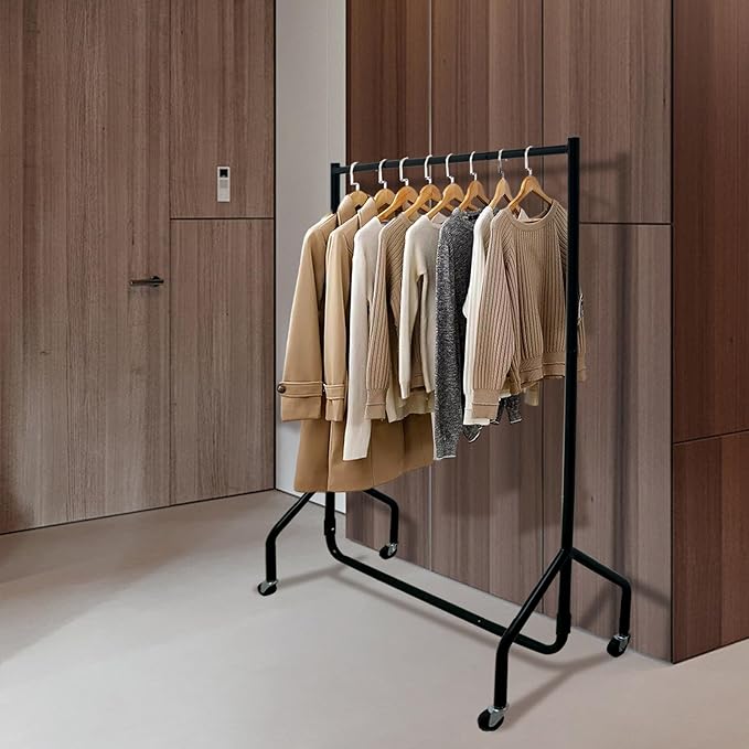 NEESEEYEE ベーシック ハンガーラック パイプハンガー 物干しラック 衣類収納ラック キャスター付き 頑丈、軽量、組み立て簡単、室内物干し 耐荷重80kg 服掛け 衣類 押入れ 幅100 奥行44 高さ150cm ブラック