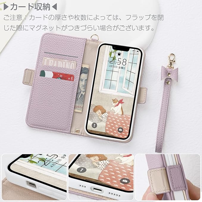 ▶【上質なオリジナルデザイン】おしゃれ手帳型カバー、はは高品質のレザーを採用しており+優しい裏面(柔軟なTPUカバー)。デザインコロケーション蝶々結びストラップ、ファッションのセンスを強調、シンプルのデザインですが、高級感が溢れ。超軽い、超薄い、肌のような手触り。落下防止に役立ちし、手帳型ケースでもかさばらず、女性へのプレゼント、彼女へのプレゼント、誕生日プレゼント、敬老のプレゼント、カップル スタイル、友人スタイル、家族スタイル、異なる色のケース手帳型 、スマホと全体にぴったりした一致感で。