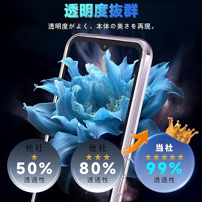 カメラレンズの周りに段差をつけて擦り傷を防ぎます、平らな場所においても、液晶画面とカメラレンズに直接触れることがなく、ケース四隅のエアクッションデザインにより、ケースの四角を強化し、本体が落ちる場合に伝わる衝撃を吸収し、落下時の衝撃を最小限に抑えます、を全方位からしっかり守れます。 【透明で高品質な素材 & マイクロドット加工 】