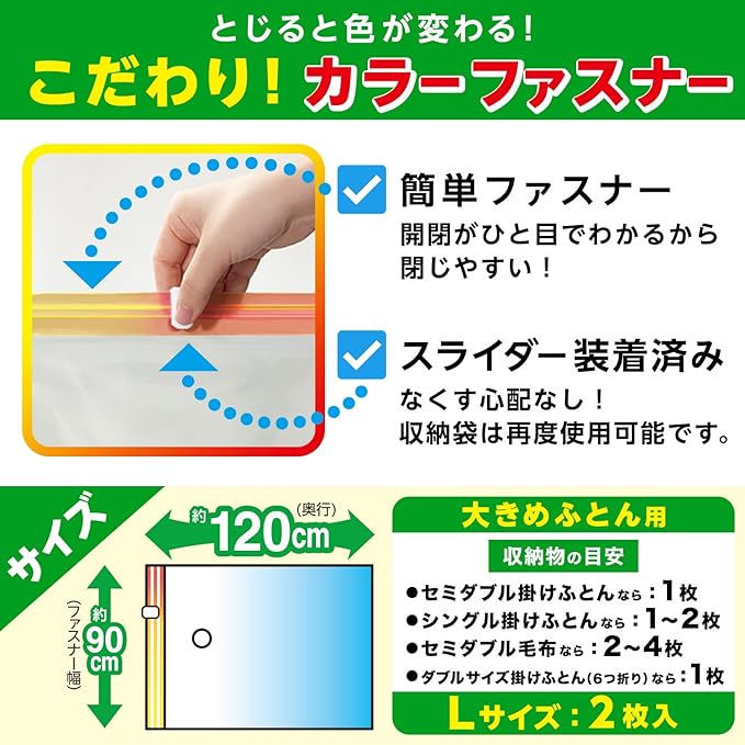 ●収納中も圧縮袋に入れておくだけでダニ対策ができます。収納期間目安:約6ヶ月