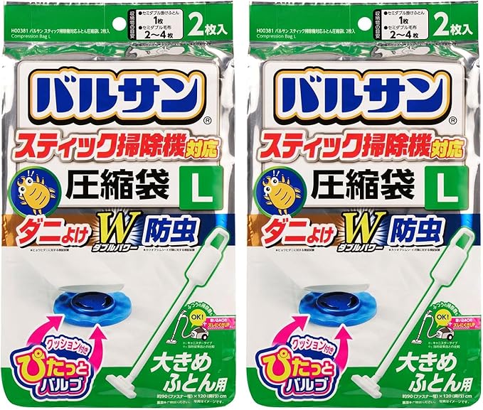 レック バルサン スティック 掃除機対応 ダニ除け ・ 防虫加工 ふとん圧縮袋 Lサイズ 2枚入 2個セット / 目安: セミダブル掛けふとん 1枚 / ふつうの掃除機もOK
