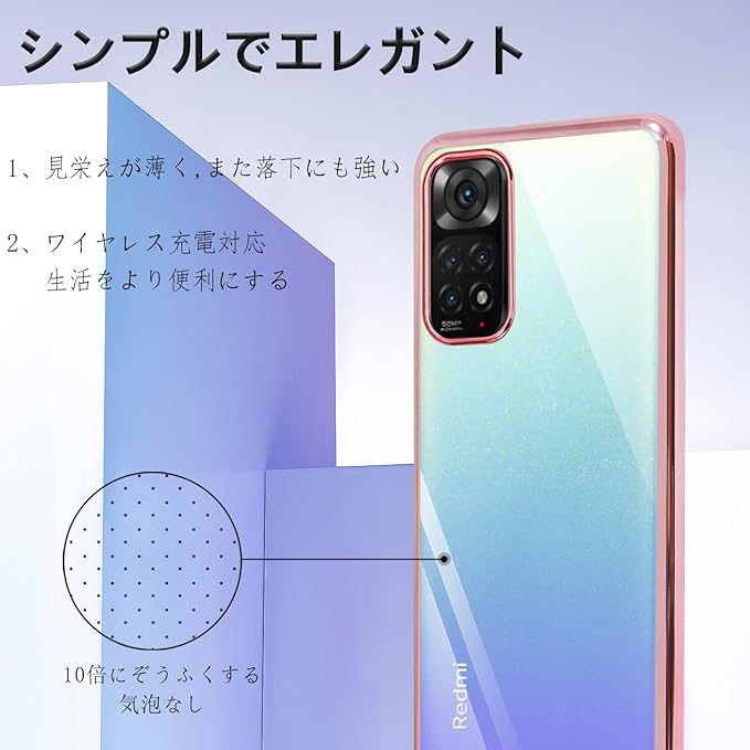 Xiaomi Redmi Note11 ケース クリア カバー スマホケース TPU 透明 薄型 軽量 耐衝撃 メッキ加工 ソフトケース 人気 カバー ワイヤレス充電対応(ローズゴールド)