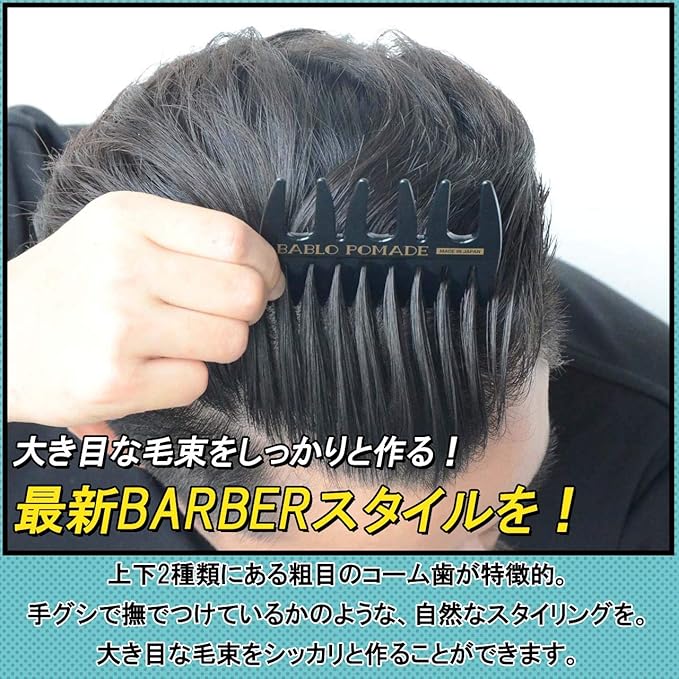 【メンズ・レディース両用】男性の場合は、オールバック、コームオーバー(七三分け)、ポンパドール(リーゼント)、ツーブロック、クロップスタイルなど、バーバー/クラシカルスタイルの仕上げ用に最適。また、女性の場合はウェーブスタイルを作るのに重宝します。