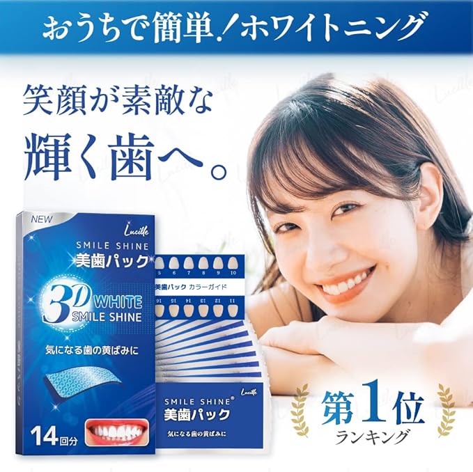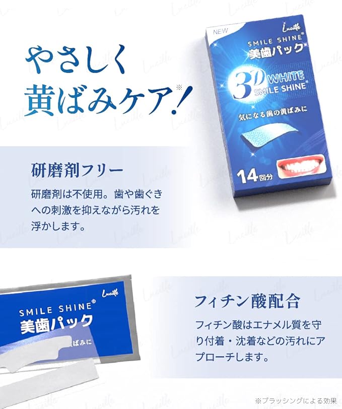 ホワイトニング シート 歯 3D セルフ 歯を白くする 歯の漂白剤 黄ばみ落とし 即効性 ヤニ 自宅 テープ 人気 貼るだけ 14回 28枚 美歯パック スマイルシャイン ルシール