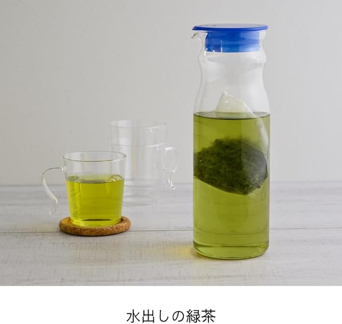 直径9cmの冷蔵庫ドアポケットに入るサイズです。2本セットなので麦茶と緑茶で分けて作ったり、日ごとに分けたりと便利な使い方ができるセットです。本体上部がくびれ形になっているので、持ちやすく注ぎやすいです。くびれの上までで、1200mL入ります。本体は耐熱ガラスでできているので、熱湯の使用も可能です。フタもポットも食器洗い乾燥機での使用が可能なのでお手入れも簡単です。