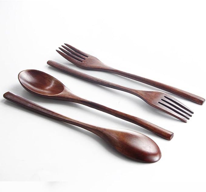 AOOSY カトラリー スプーン フォーク 4点セット 通勤用食器セット 弁当用 携帯便利 学生用 天然木製ディナーセット