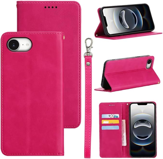linlingo に適用するiPhone 16E ケース 手帳型 手帳型ケース 適用いPhone 16e スマホケース カバー 手帳型 PUレザー カード収納 財布型 耐衝撃 ケース マグネット スタンド機能付き 5色(iPhone16E適用 ケース手帳型) (ローズレッド)