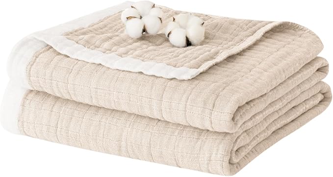 クモリ(Kumori) ガーゼケット ダブル 夏用 4重ガーゼ お昼寝ケット やわらか 軽量 吸湿 通気 洗える ガーゼ生地 オーガニックコットン 肌掛け 冷房対策 180X200cm ベージュ