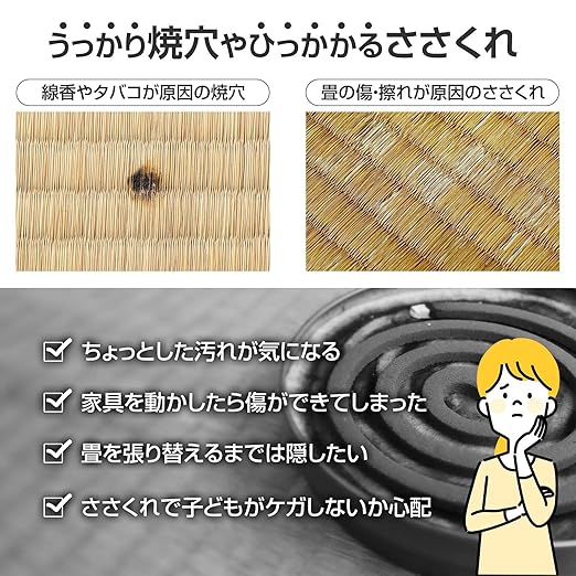 畳の焦げやキズ、汚れなどのカモフラージュに◎