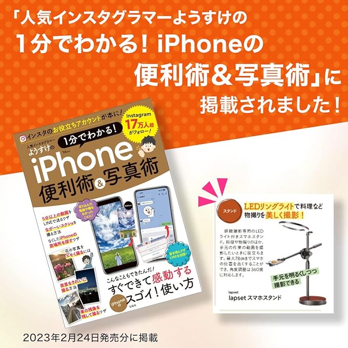 lapset 【iPhone専門誌 雑誌掲載モデル】 スマホスタンド 俯瞰撮影 LED ライト付き 伸縮 日本語取扱説明書 動画付き ロングタイプ