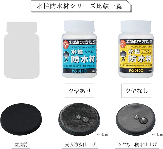 作品の表面に塗るだけで、強方な防水効果を発揮する特殊樹脂の水性防水塗料です