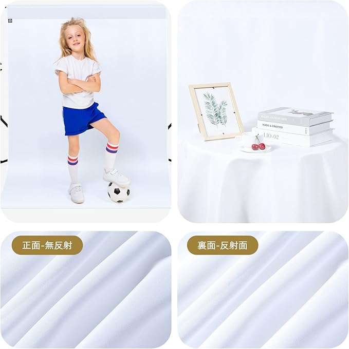 【改良版白背景布】改良後の撮影 白布は少々硬いポリエステル材質を採用して、綿製と改良前のポリエステル材質よりシワが目立たなく、低温アイロンでシワを易く取れます。垂れ感が良くて、優れるスタジオ効果をご提供できる背景布です。