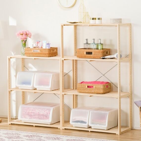 この棚は組み立てが必要です。正しい組み立て方法に従ってください。また、棚全体の耐荷重は30kg、棚板1枚あたりは10kgです。過度な荷重をかけないでください。