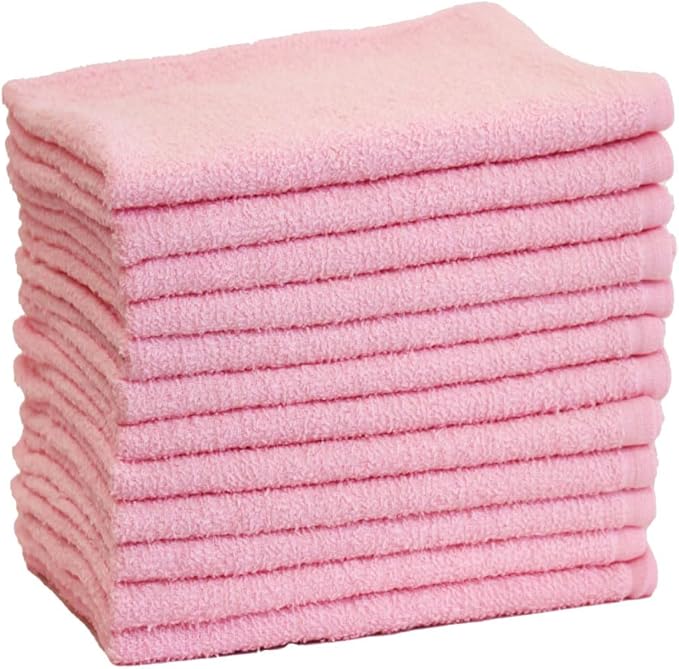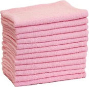 カラーフェイスタオル 200匁 12枚セット 34 86cm 無地 コットン 綿100% 家庭用 業務用 まとめ買い 使い勝手の良い薄手タオル (ピンク)