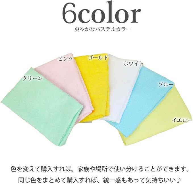 カラーフェイスタオルは、手を拭いたり、顔を洗った後に水分を拭き取るのに便利です。バスルームや洗面所、ジム、旅行時など、さまざまな場面で使用されます。使う人によって色分けしたりできるので、衛生的に安心してお使い頂けます。 気分で色を使い分けるのもおすすめです。