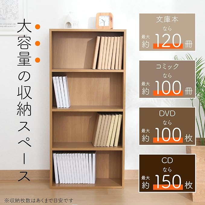 ●コミック本 (通常版、B6判):約80冊・DVD:約100枚・CD文庫本:約150枚・文庫本:約120冊 (※収納時の目安。本やケースのサイズにより収納枚数は異なる)