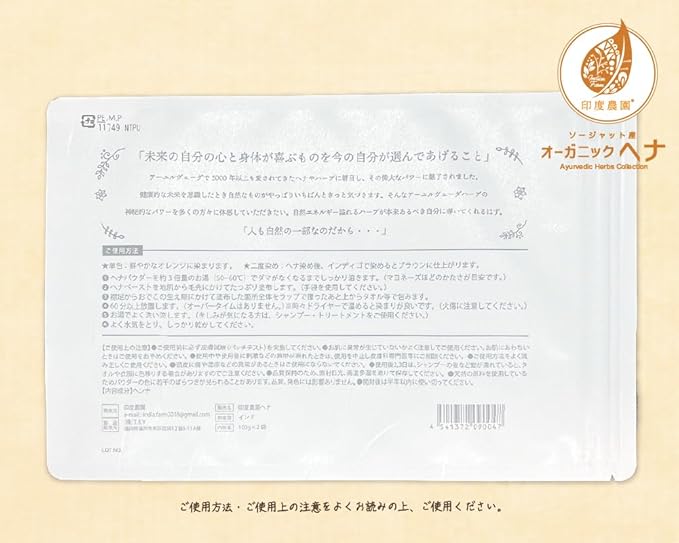 印度(インド)農園 100%オーガニックヘナ 200g(100g 2個)