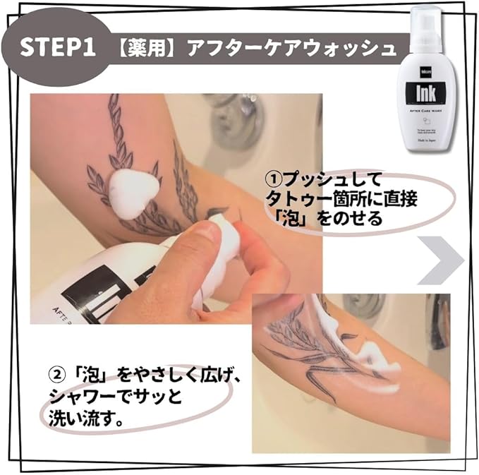 Ink 2STEPセット|クリームとウォッシュ 入れた後の洗浄で清潔に保ち、保湿で色飛び・色あせ対策で綺麗なタトゥーへ仕上げる