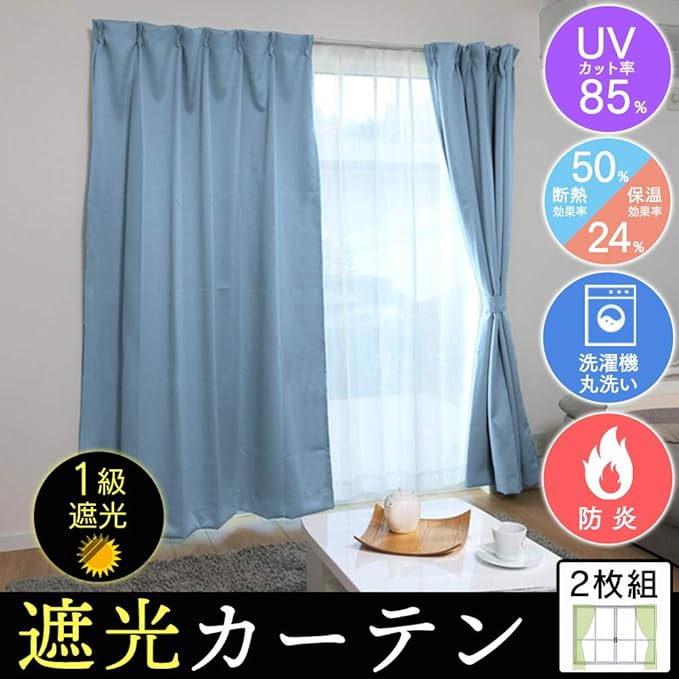 アイリスプラザ カーテン 1級遮光 丈200cm 2枚組 UVカット率85% 【節電/省エネ】断熱効果50%・保温効果30%以上 洗濯機対応 リビング・寝室用 幅100 丈200cm 2枚セット ベージュ