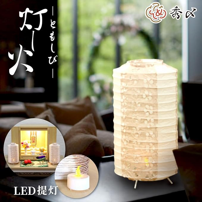 セット内訳:提灯本体・縦置きスタンド・LEDろうそく(電池付属)