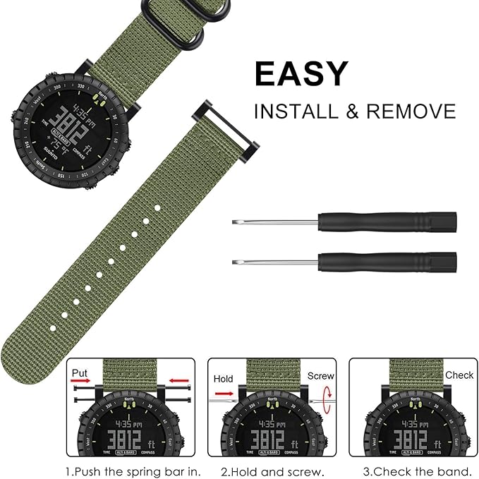 FINTIE (フィンティー) 腕時計バンド Suunto Core対応 プレミアムナイロン織物交換用スポーツストラップ メタルバックル付き Suunto Coreスマートウォッチ(オリーブ)