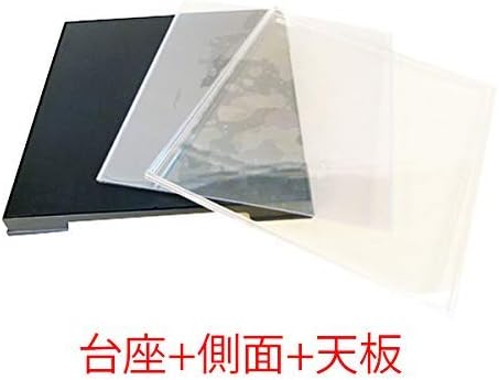 ・ケースは底板(黒色厚さ約1mm)及び天板(透明)はプラスチック(厚さ約1mm)、側面(周囲)は透明のプラスチックシート(塩化ビニール厚さ0.35から0.5mm)で形成されています。