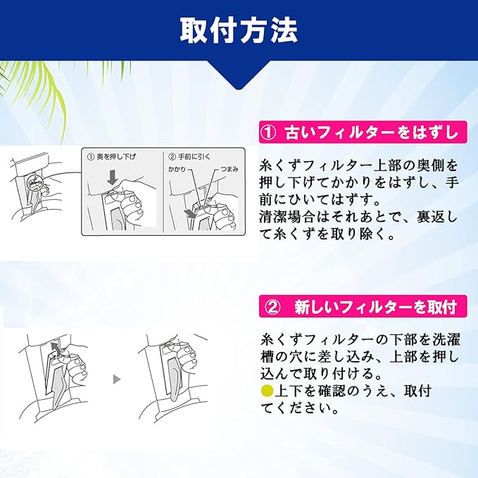 『購入の際の注意点』 ● ご使用の洗濯機の仕様やサイズに合わせて適切なサイズのフィルターをお選びください。 ●生産ロットの違いにより、商品の色や形が若干異なる場合がございますので予めご了承下さい。それらはすべて使用可能です。 ●定期的にフィルターの掃除を行い、効果的なフィルタリングを維持してください。 アフターサービスについて: お客様の満足が最優先です。商品に不具合がある場合は、ご連絡いただければ迅速に対応させていただきます。 洗濯機用糸くずフィルターで、お家の洗濯をもっと快適で効果的にしましょう!今すぐカートに入れて、新しい洗濯体験をお楽しみください
