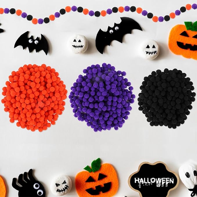 FINGOOO ハロウィン ポンポンボール 飾り 800個入り 直径約10mm DIY 手芸 デコレーション ぽんぽん 毛球 小玉 カラフル フェルト (ハロウィン)