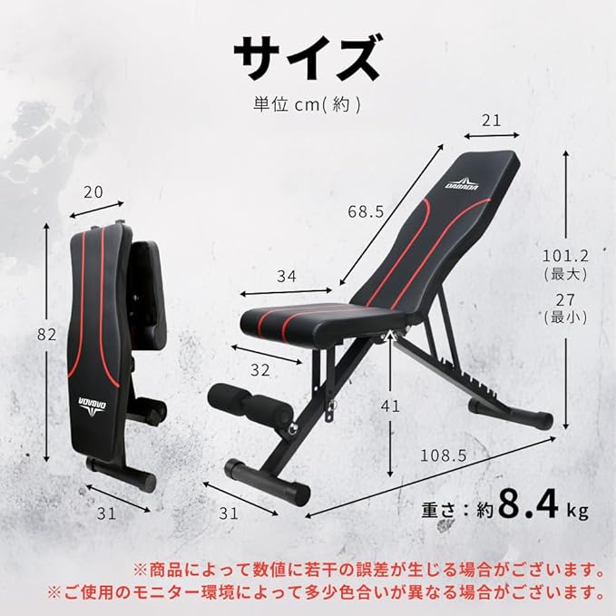 DABADA(ダバダ) トレーニングベンチ インクラインベンチ ダンベル ベンチ フラットベンチ 耐荷重300kg 角度調節 組立簡単 折り畳み式 収納便利 マルチシットアップベンチ 筋トレ