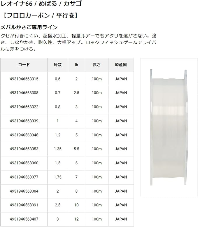 メバル・かさご専用ライン! クセが付きにくい、超撥水加工、軽量ルアーでもアタリを逃がさない。強さ、しなやかさ、耐久性、大幅アップ。ロックフィッシュゲームでライバルに差をつけろ。