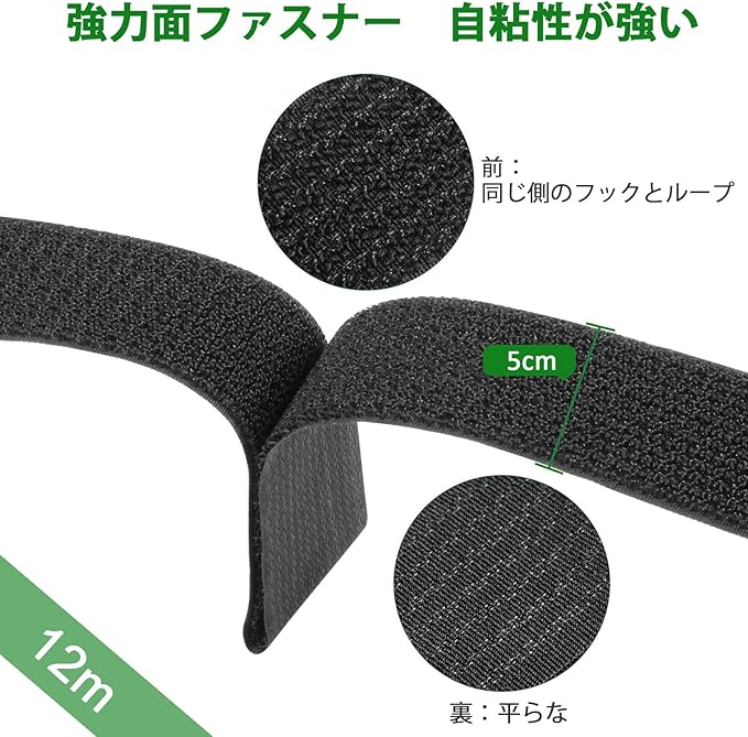 マジック結束バンド 面ファスナー 長さ12mx幅5cm 40個バックル付き 荷締めベルト ベルクロ 耐熱 自由にカット 繰り返し 荷物梱包 収納用テープ DIY用 業務用 家庭用 工業用 (5cmx12m)