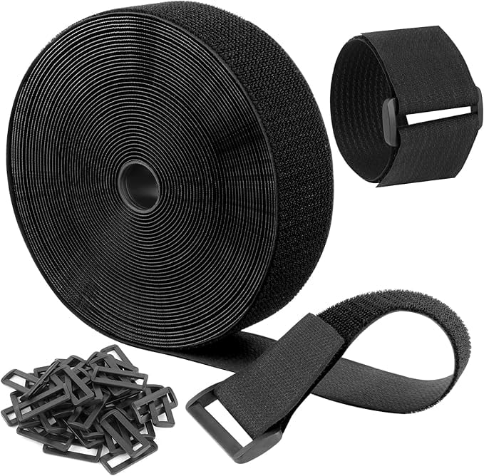 【12M荷締めベルトと40個バックル】幅50mmの締めベルトと40個のプラスチックバックル。ベルクロは6mロールから任意の長さにカットし、プラスチックバックルを接続してループを形成し、耐荷性が高くて、再利用可能です。