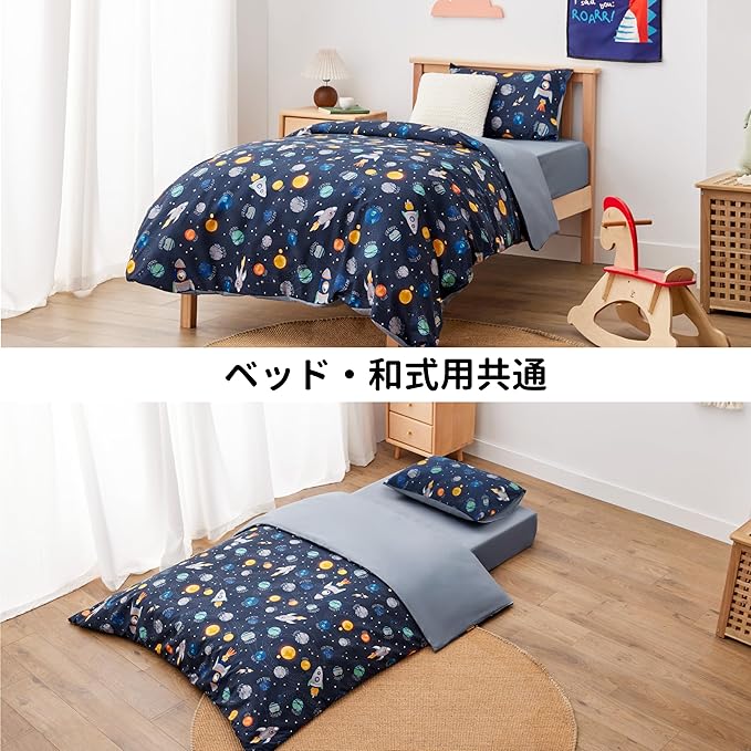 【宇宙の旅へ出発!】惑星やスペースシャトルが描かれた色鮮やかなデザインで、毎晩の寝る時間が宇宙探検に。星々をめぐる旅へ出発しましょう。