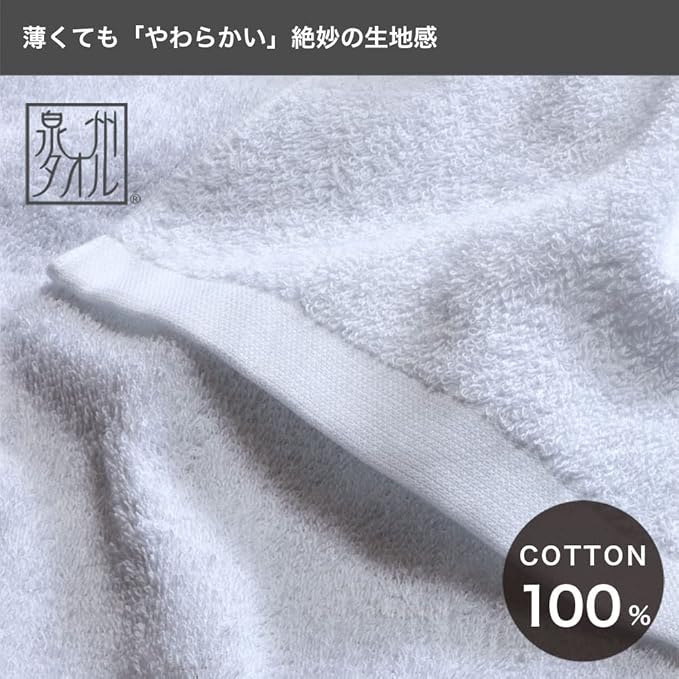 薄手のフェイスタオル。特徴は乾きが早い、たたむとコンパクト、絞りやすい、もちろん柔らかくて吸水性がいい。銭湯やスポーツジム、バーベキュー、キャンプ、旅行、業務用に最適。