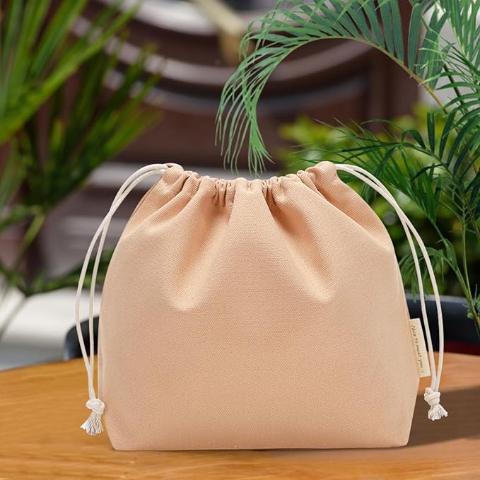 FINGOOO 巾着袋 収納袋 ギフトバッグ 無地 かわいい おしゃれ 可愛い 小 マチ付き 収納ポーチ ラッピング 旅行 学校用 メイク 化粧品 小物入れ (帆布 M, 赤白橡[あかしろつるばみ])