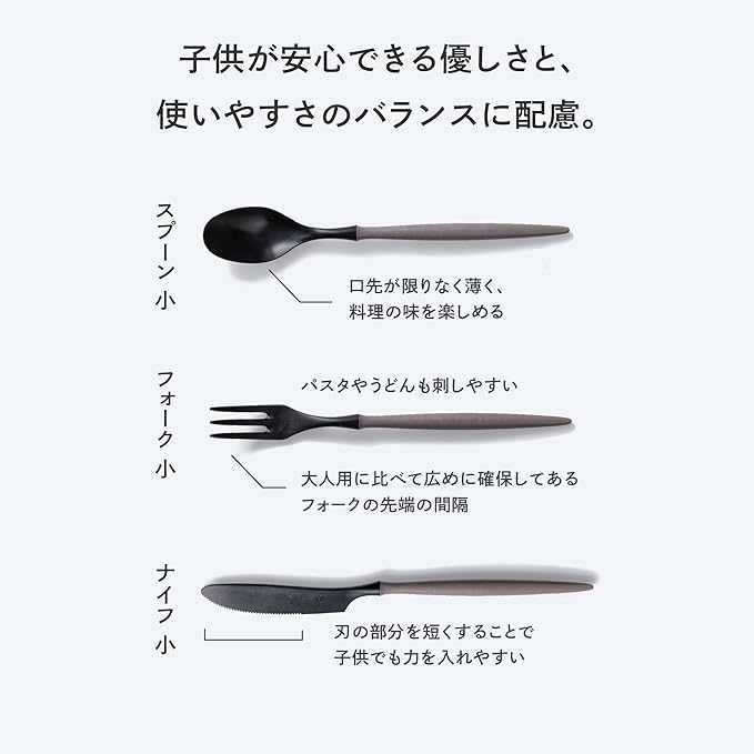 【こだわりある人の普段使い食器】キッズスプーンは口通りがよい薄い先端で、料理をより楽しむことができます。小さいサイズは子供も使いやすく、デザートやフルーツを食べる際にもおすすめです。