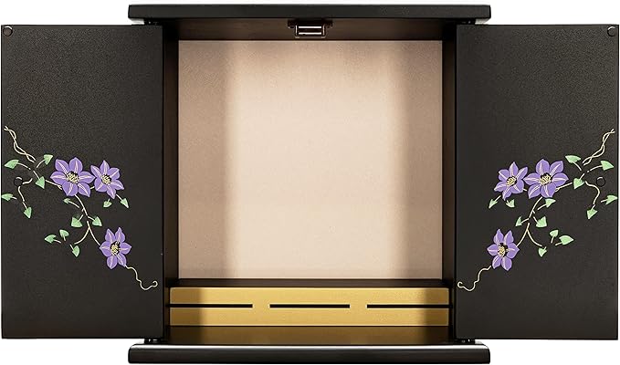 コンパクトで扱いやすいお手頃なお仏壇です。シンプルで場所を選ばないデザインとなっており、 扉を開くと両サイドには鉄仙の花が鮮やかに描かれています。