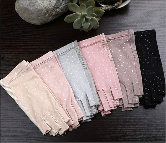 [ふく福] レディース 指なし 手袋 レディース ショート グローブ 綿 スマホ手袋 UVカット 日焼け止め手袋 紫外線対策 薄型 伸縮性 滑止め付 女性 運転 自転車 通勤 通学 アウトドア ドライビング用 春夏