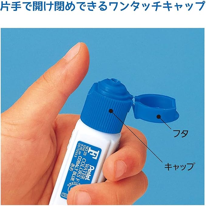 片手で開け閉めできるワンタッチキャップの水彩えのぐ